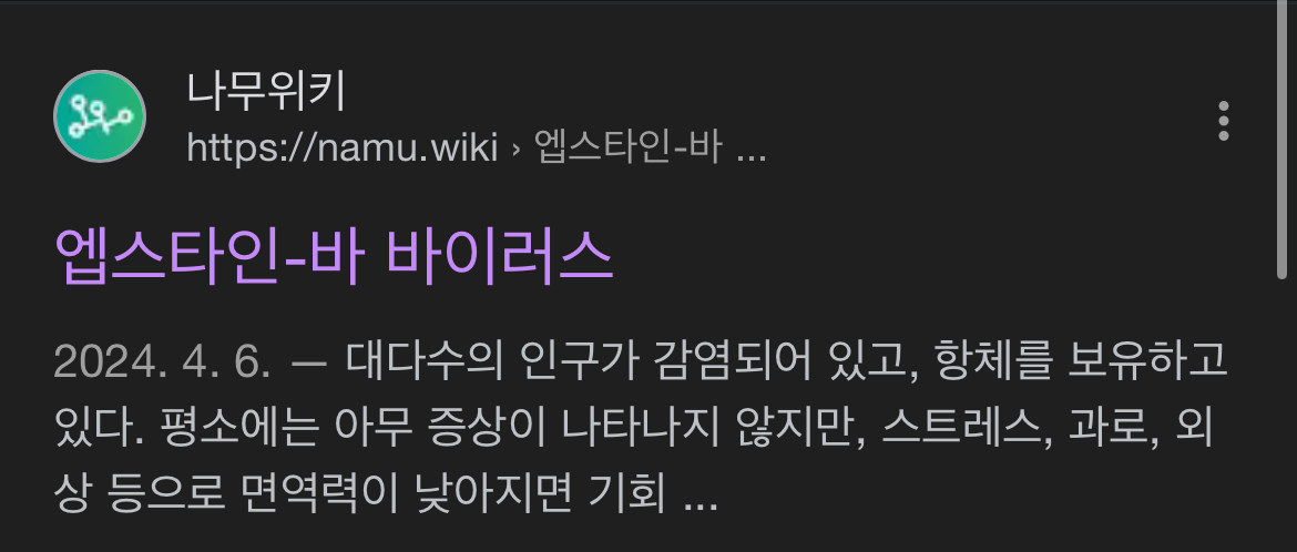 아님 그가 앓고 있는 엡스타인-바 바이러스를