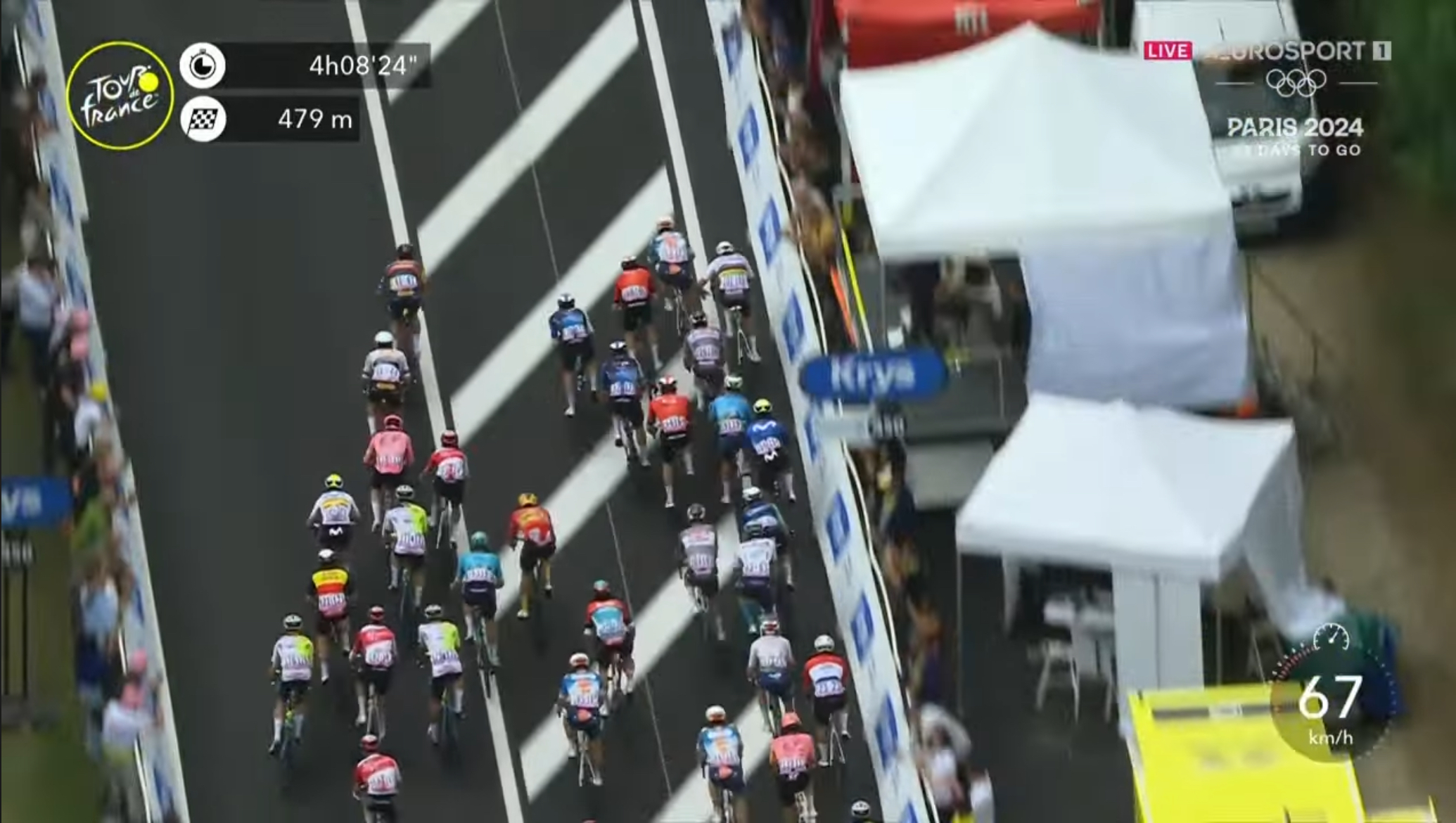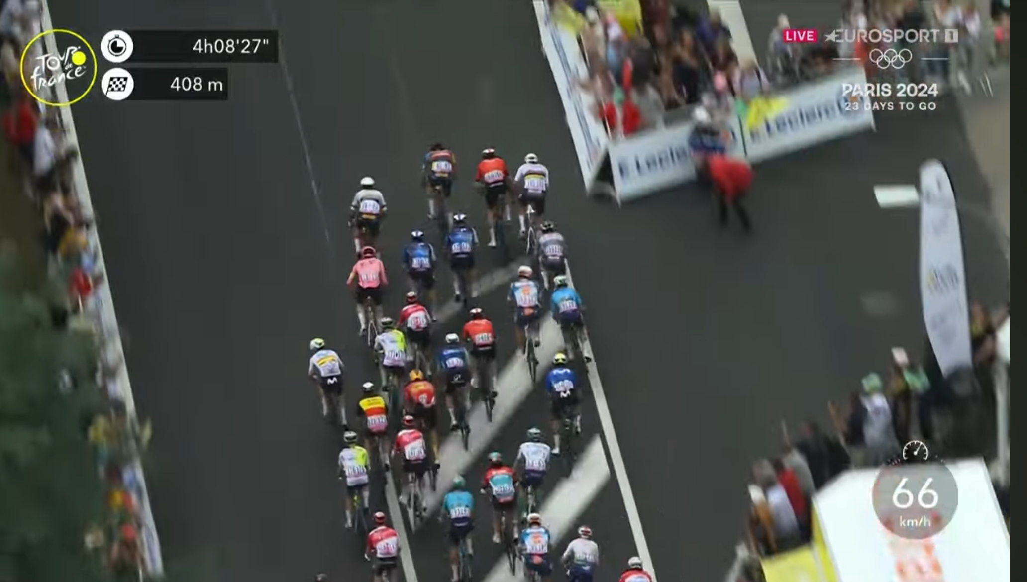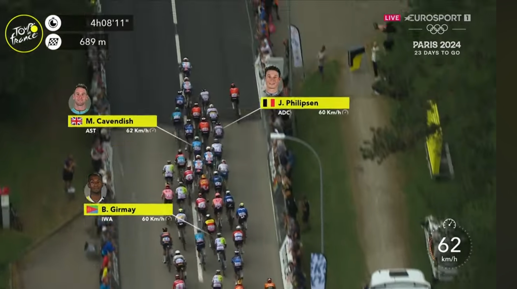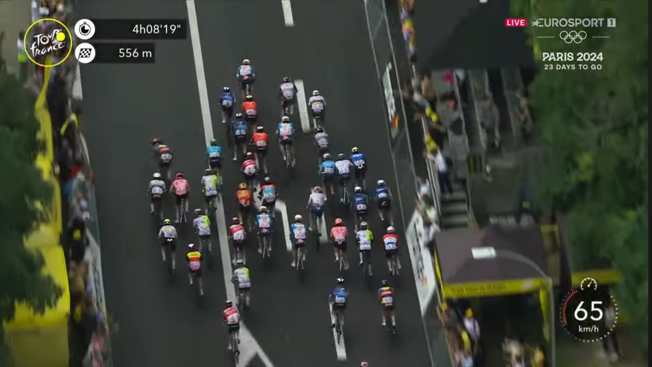 556m 사진 오른쪽 앞부분에 쪼르르 몰려있는 3명 중 하나가 캐번디시다. 몸이 살짝 부딪혀서 조마조마