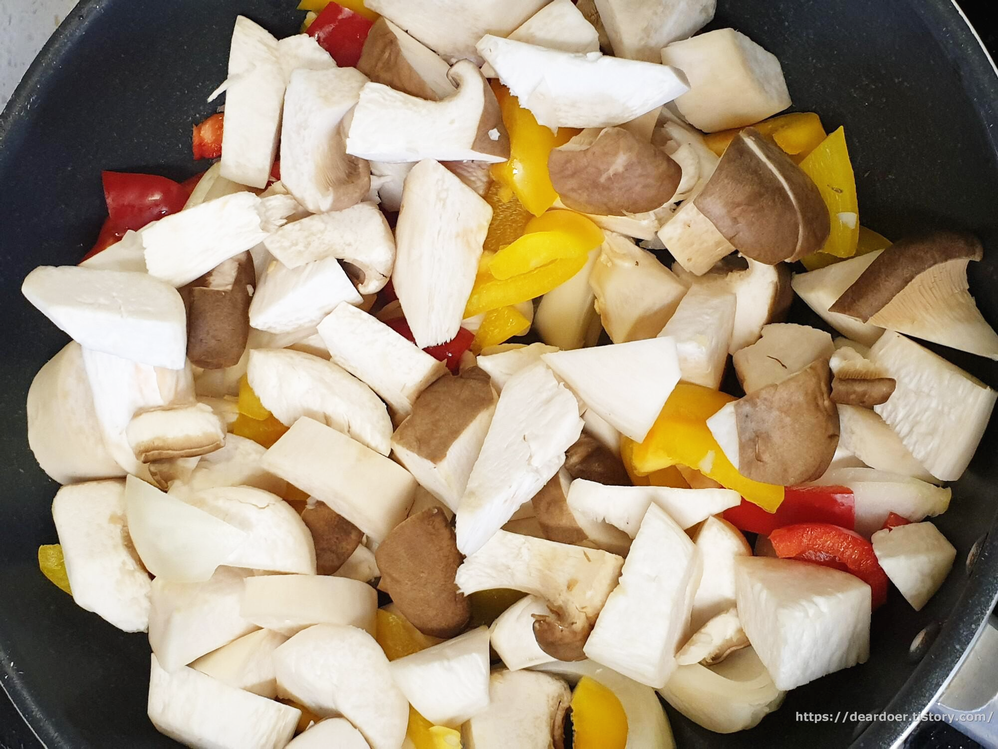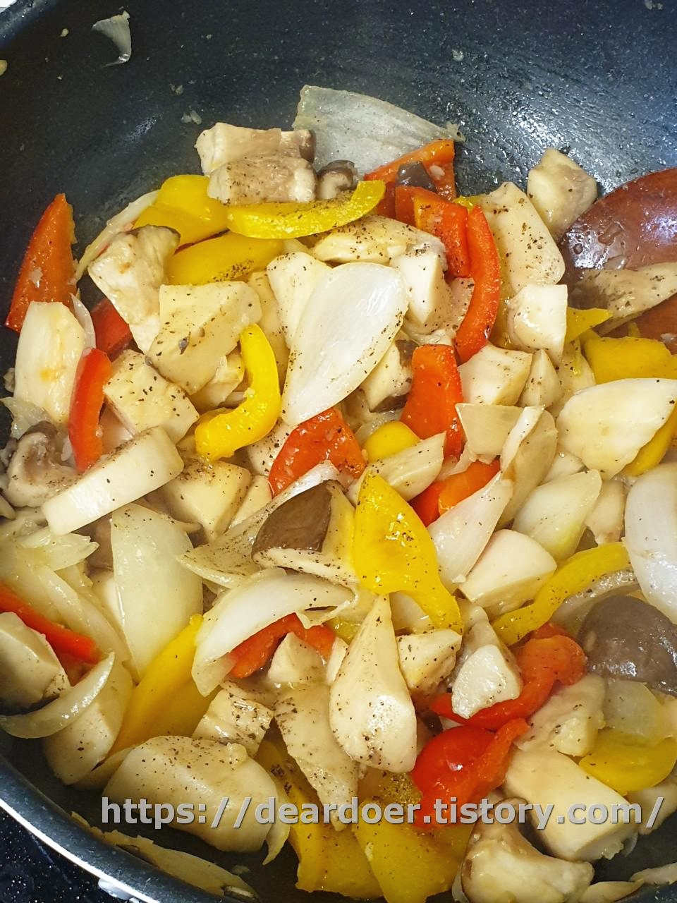 재료를 한번에 투하 후 볶아 줍니다. (디어두어는 간단한걸 좋아해요!)