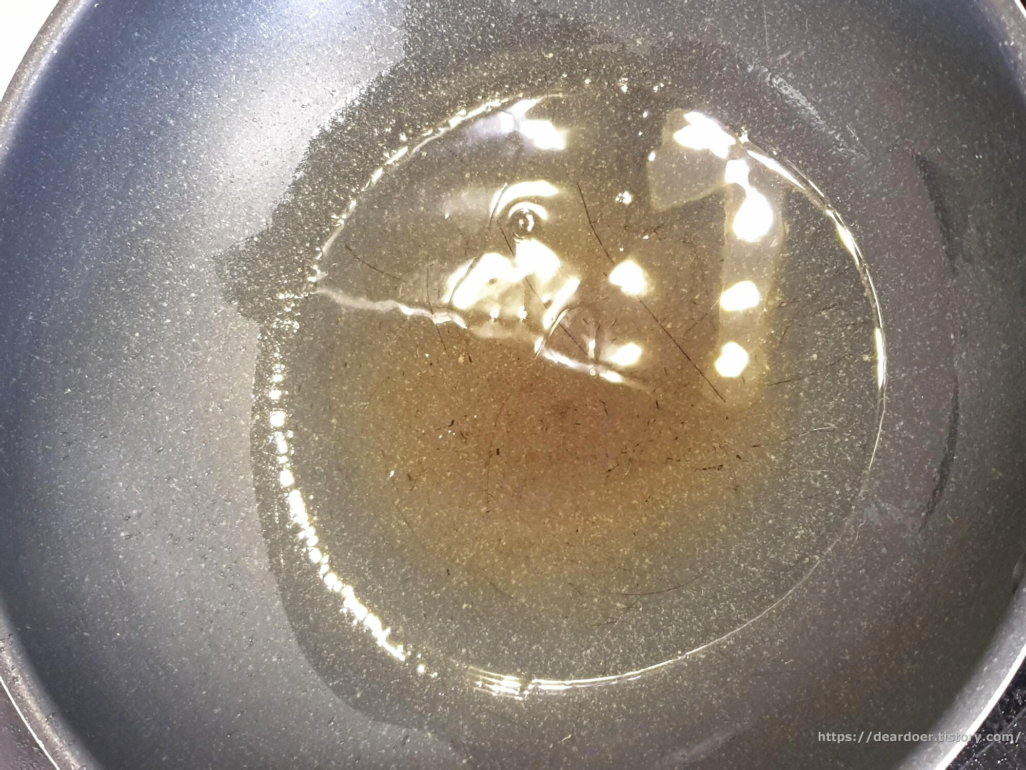 디어두어는 깜빡하고 나중에 넣어서 후라이팬 구석부분에서 볶아주었어요.