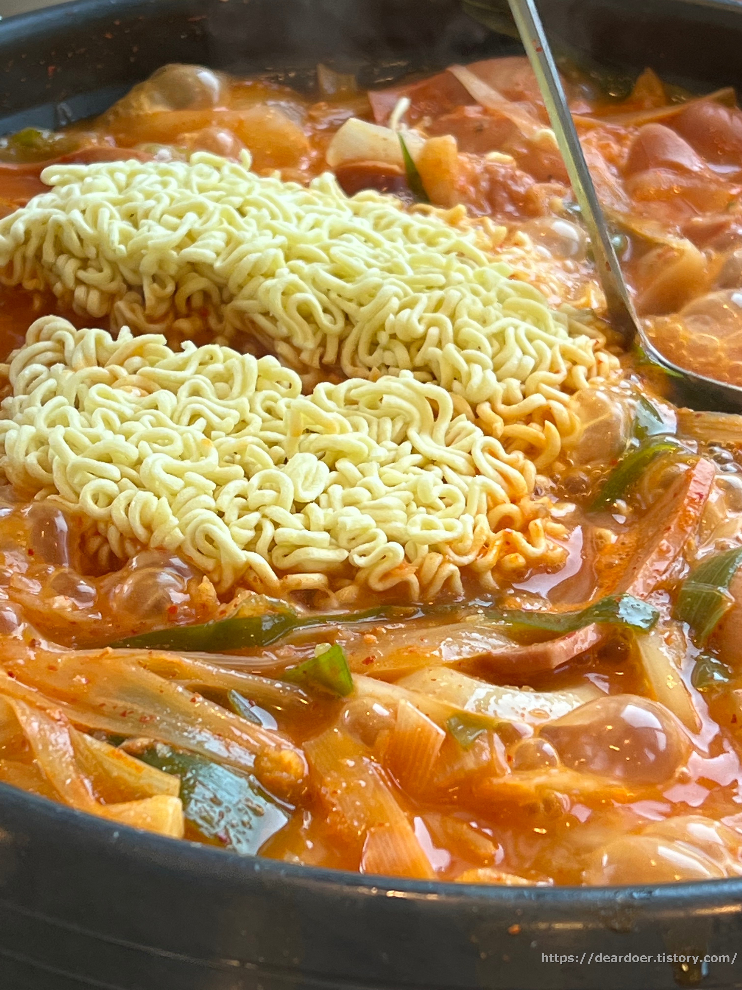 햄과 김치는 물론이고, 부대찌개에 들어간 파도 너무 맛있어요.