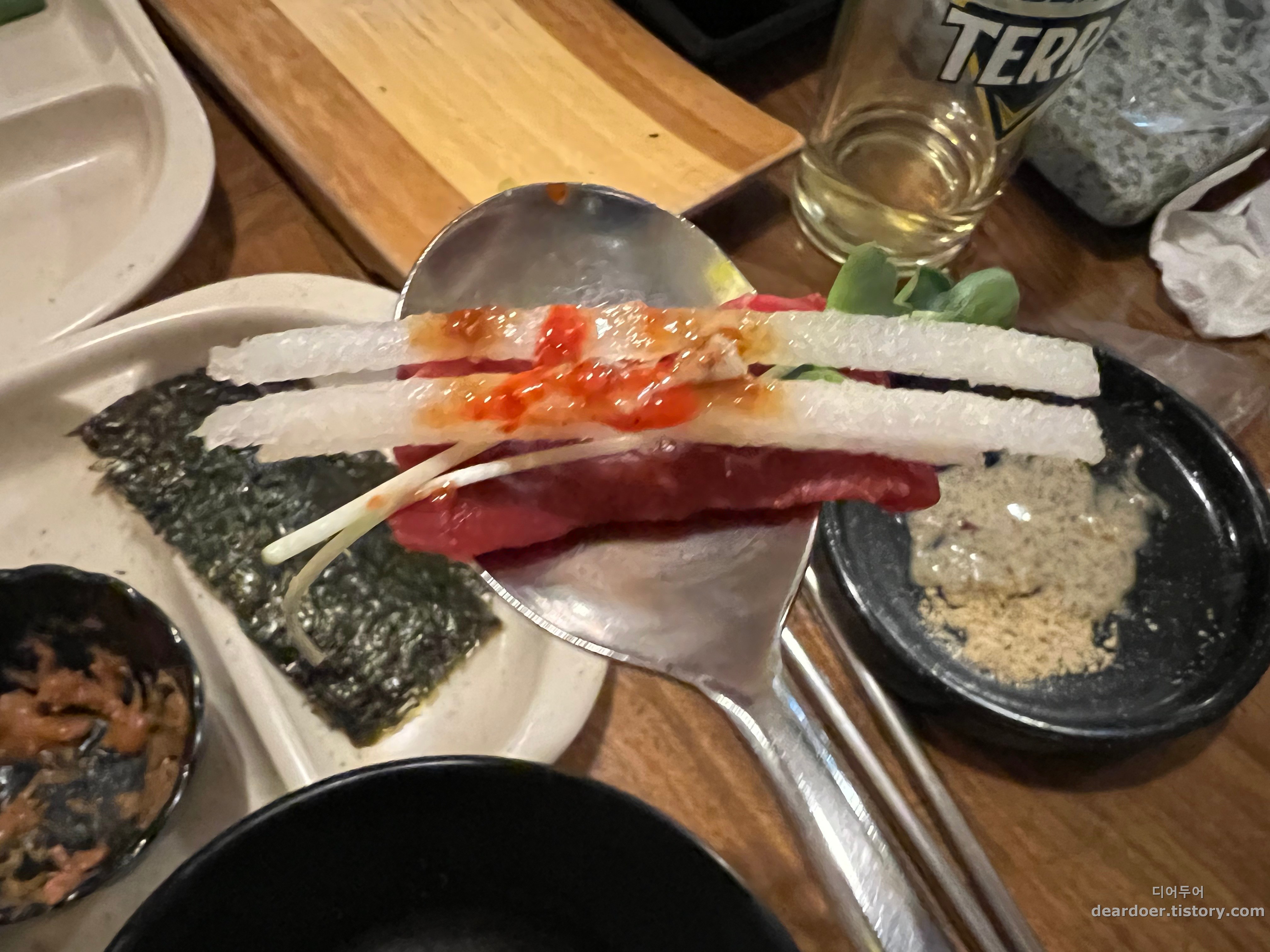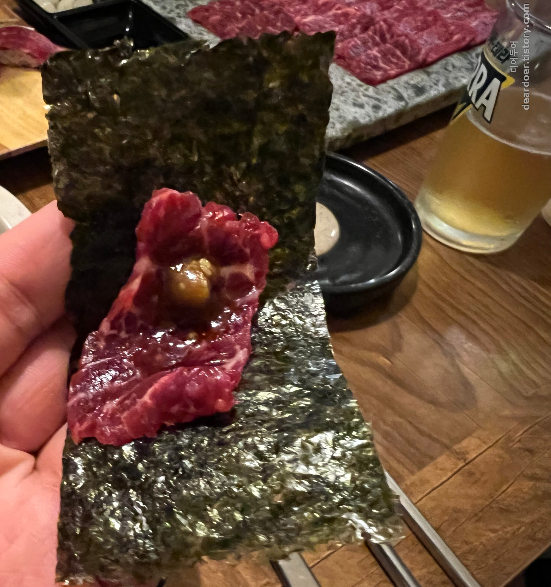 한우초밥 한입 먹어본 후, 담번엔 한우 오마카세 꼭 가봐야겠다고 생각한 디어두어였습니다.