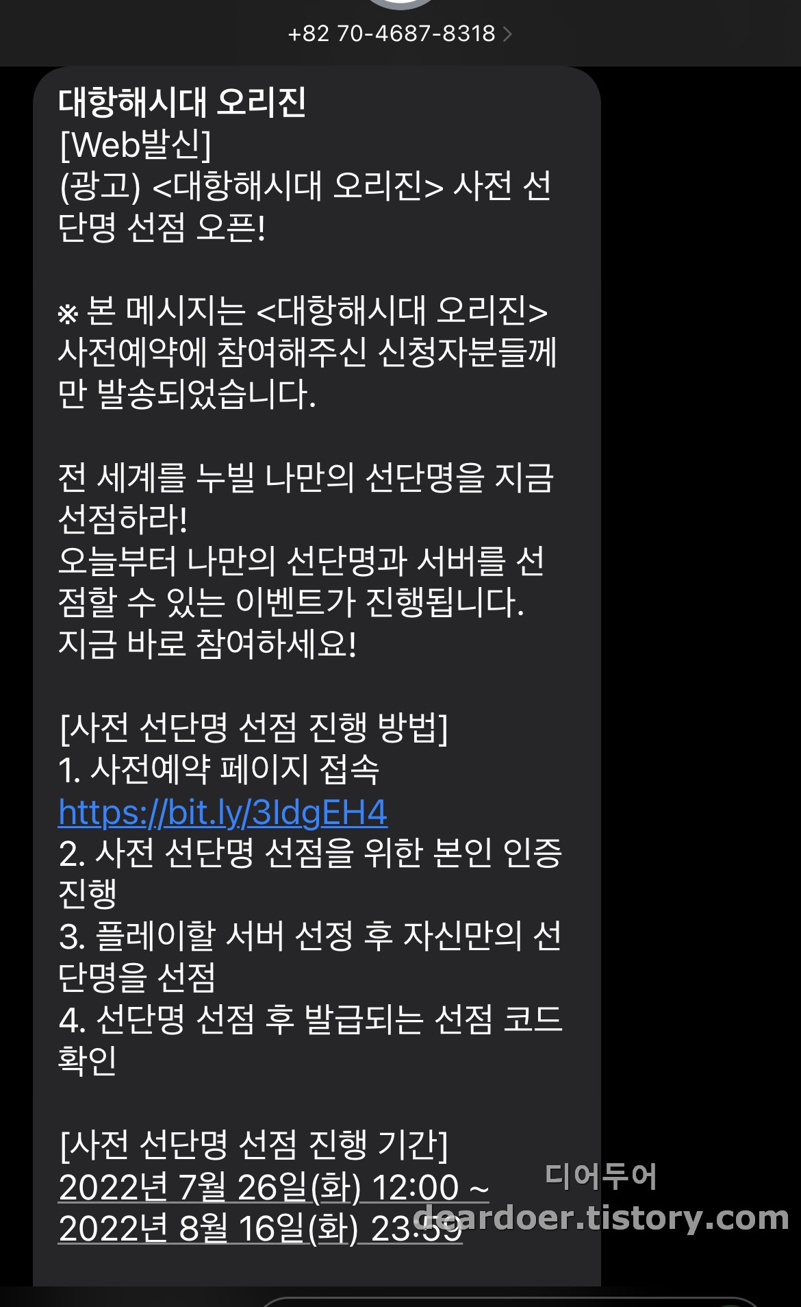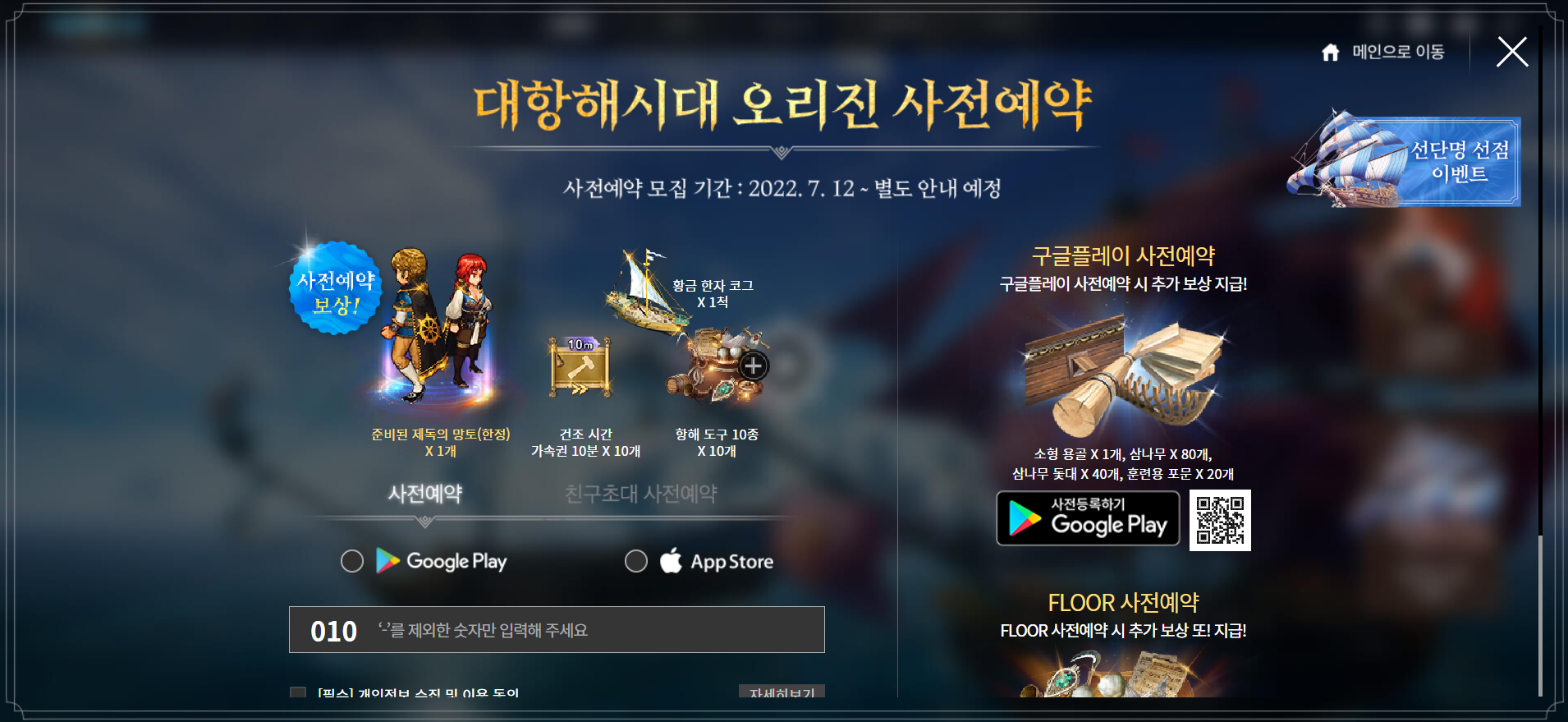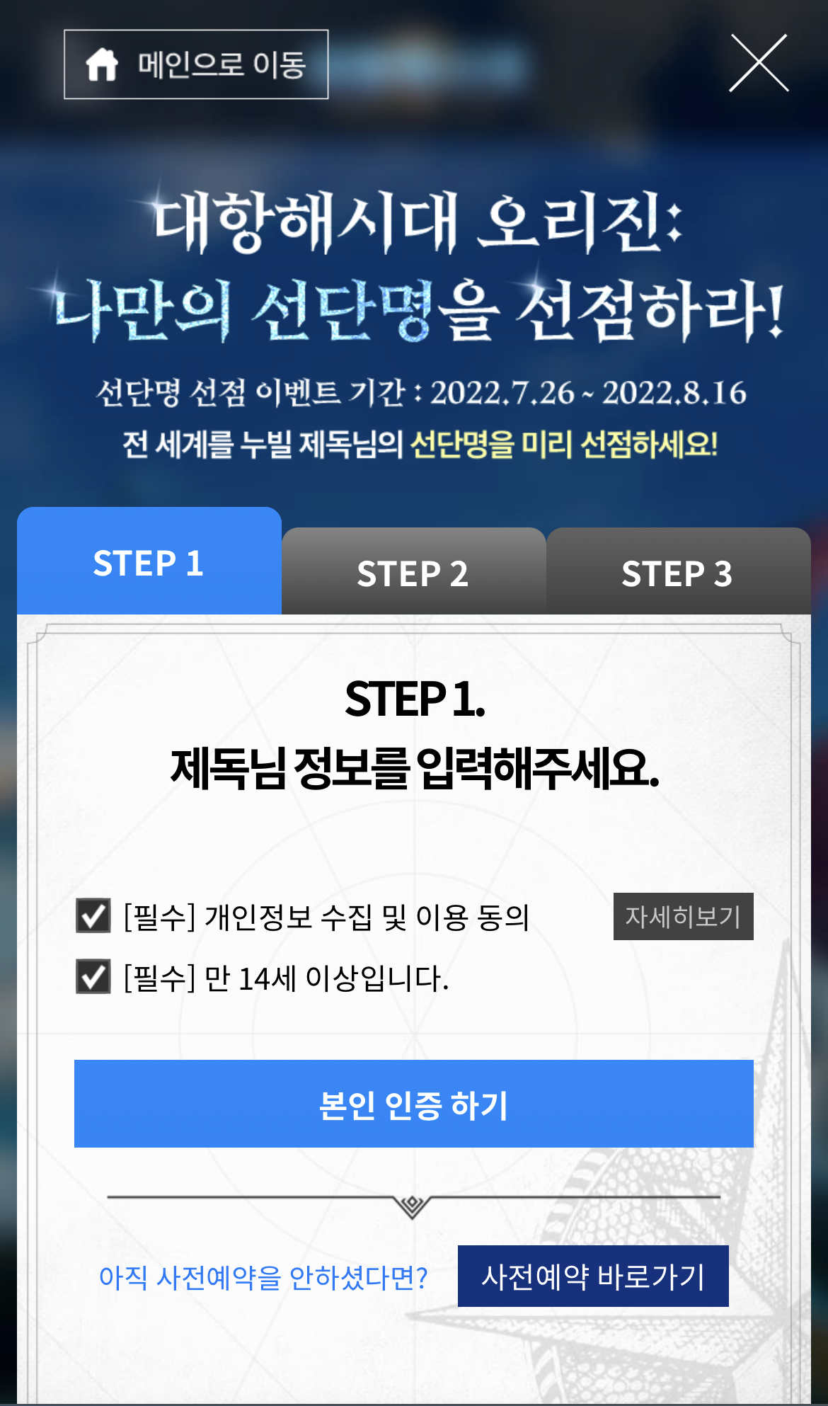 대항해시대 오리진 / 선단명 선점, 서버 선점 이벤트